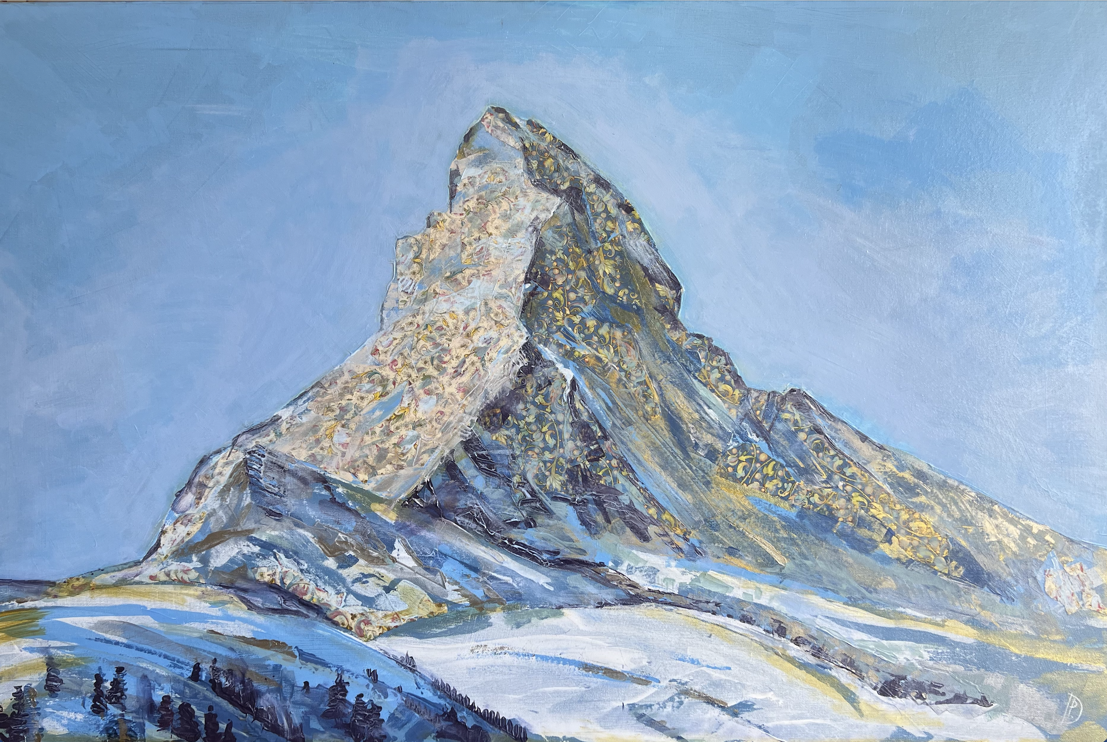 Polina Demidova « Matterhorn. Zermatt », 80х120сm, collage/acrylique sur toile, 2023 -ORIGINAL FOR SALE 2500 chf